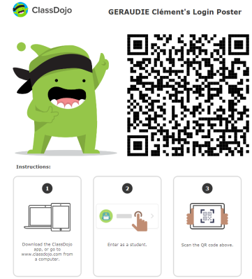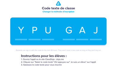 - Les élèves devront scanner le QR code pour accéder à la classe en utilisant l'application ou sur le site web ClassDojo.