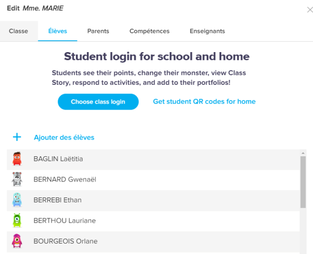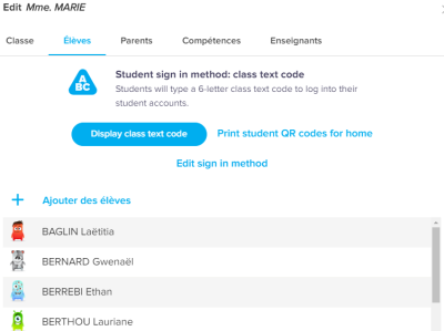 - Cliquer "Elèves" puis sur "Get student QR codes for home"
